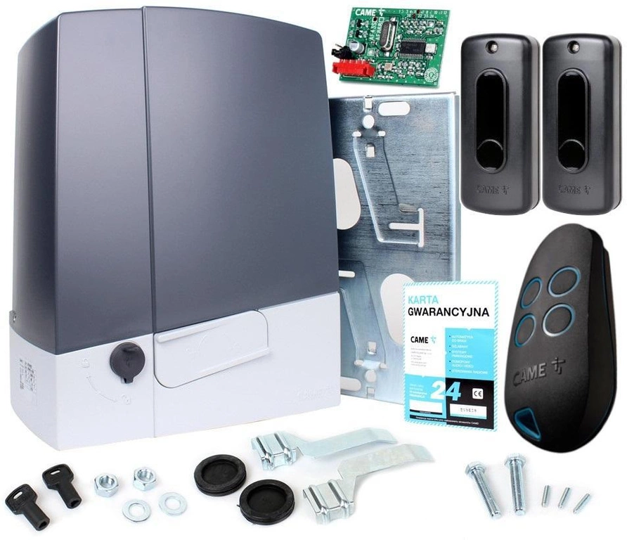 - V sadě: CAME BXV06AGS 24V pohon Řídicí jednotka: Pár fotobuněk: DIR10 Základová deska a montážní příslušenství Mechanické koncové spínače 2 spojková tlačítka
