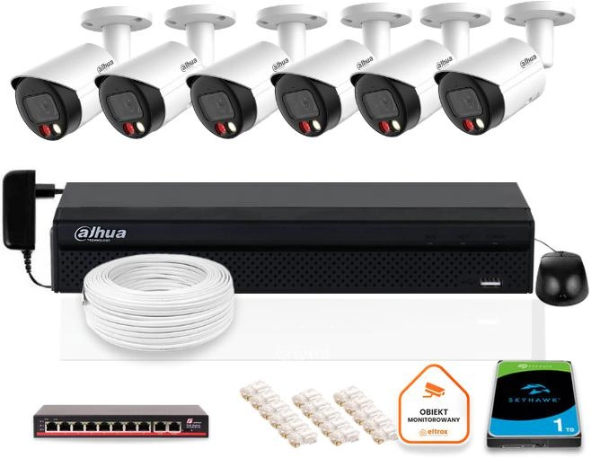 - Dahua IP-Überwachungskit mit 6 8MPx-Kameras, 4-Kanal-DVR, 1TB-Laufwerk. Enthält mobile App, PC-Software, Außenkameras mit Nachtmodus. Ideal für Haus und Geschäft.
