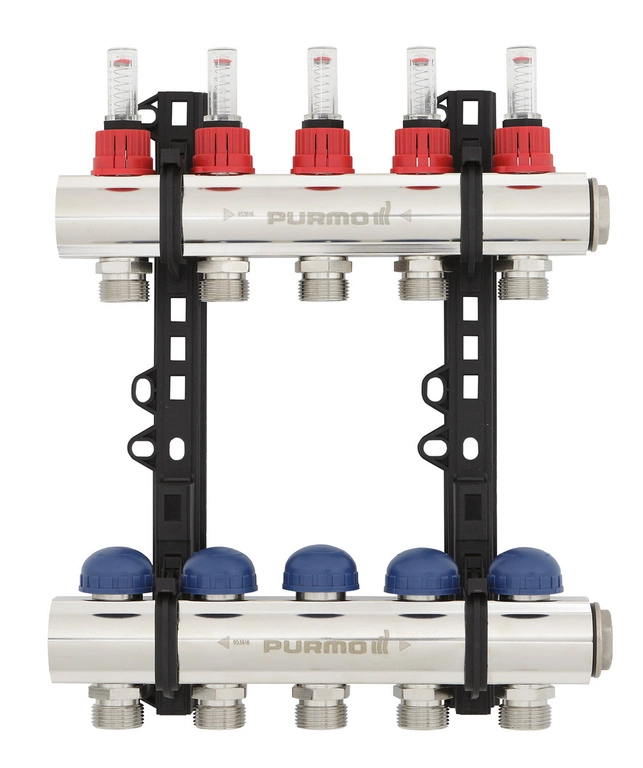 Colector de calefacción INVEST con rotámetros para 6 circuitos para sistemas de calefacción por suelo radiante