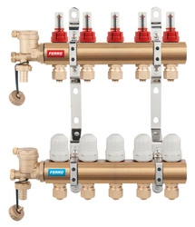 Collecteur à 5 voies avec vannes thermostatiques et débitmètres