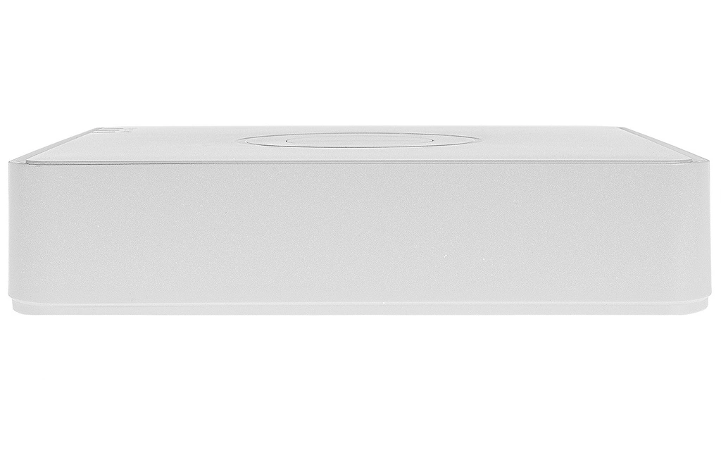 L'enregistreur est équipé d'une interface SATA avec prise en charge d'un disque jusqu'à 10 To et de deux ports USB 2.0 sur le panneau arrière. L'alimentation est assurée par un bloc d'alimentation externe de 12 VDC, 2 A, et la consommation électrique ne dépasse pas 10 W (sans disque dur). L'unité fonctionne à des températures comprises entre -10 °C et +55 °C et à une humidité comprise entre 10 % et 90 %. Ses dimensions sont de 200 × 200 × 48 mm et son poids ne dépasse pas 1 kg (sans disque dur). Le panneau arrière contient les connecteurs suivants : entrées vidéo et audio coaxiale, HDMI, VGA, AUDIO OUT (RCA), AUDIO IN (RCA), port LAN et port USB, entrée d'alimentation 12 VDC et borne de mise à la terre GND ; selon la documentation du fabricant.