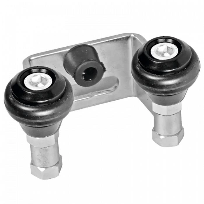 - Breve descrizione: Elemento in acciaio - staffa superiore per cancelli scorrevoli autoportanti e a binario, che li stabilizza quando sono chiusi impedendone il movimento laterale. La distanza tra i rulli è di 42 mm. Il prodotto è zincato.