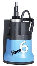 SIMER 6 dompelpomp (230V) , pompt water tot 2 mm wateroppervlak (metalen waaier en behuizing).