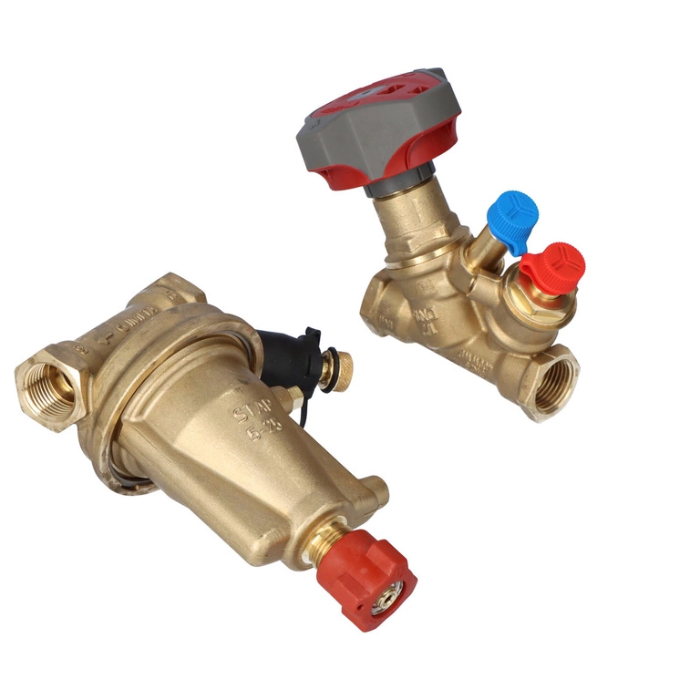 De STAP/STAD set is een set die bestaat uit een balanceerventiel en een drukverschilregelaar. STAD is een zeer nauwkeurig balanceerventiel met een digitale draaiknop voor een nauwkeurige instelling met de mogelijkheid om te meten en een signaalbuis in te brengen. De drukverschilregelaar, STAP, handhaaft een constant drukverschil op het circuit. Door gebruik te maken van een combinatie van drukverschilregelaar en balanceerventiel wordt de inbedrijfstelling van de installatie nog eenvoudiger en is er minder kans op ruis op regelafsluiters zoals thermostatische afsluiters/inserts. De meetnippels bieden volledige meetmogelijkheden zoals debietmeting, verschildruk en temperatuur. De nauwkeurigheid van de STAP/STAD-set en het compacte formaat maken hem bijzonder geschikt voor gebruik in verwarmings- en koelsystemen. De set bevat een impulsbuis van 1 m en de bijbehorende fittingen. Beide afsluiters zijn gemaakt van AMETAL® - een ontzinkingsbestendige legering, die een lange en consistente werking van de afsluiter garandeert en het risico op lekkage vermindert.
