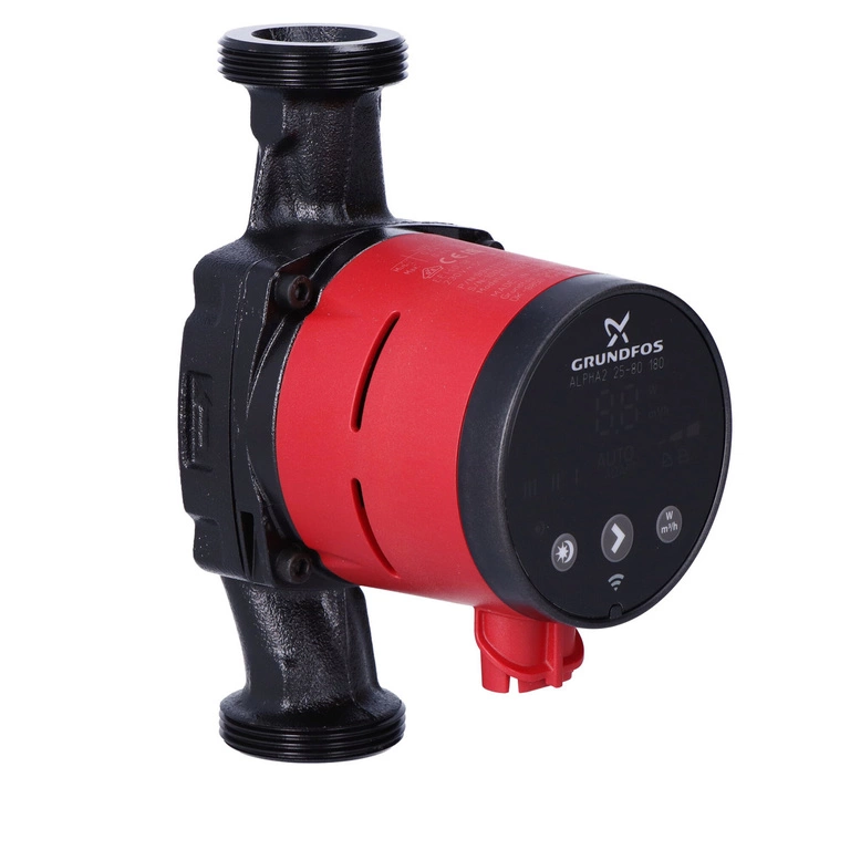 De ALPHA2 32-80 180 is een hoogefficiënte circulatiepomp ontworpen voor het circuleren van vloeistoffen in huishoudelijke verwarmingssystemen. Met een globale energie-efficiëntie-index (EEI) die ruim onder de ErP-benchmark ligt, levert de pomp aanzienlijke energiebesparingen op