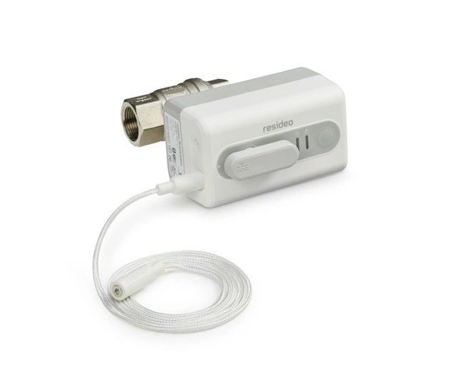 Zawór odcinający dopływ wody Braukmann L5 WiFi, to rozwiązanie, dzięki któremu instalacja wodna stanie się inteligentnym systemem. W przypadku wykrycia wycieku urządzenie automatycznie odcina dopływ wody, chroniąc przed szkodami i dając czas na podjęcie wymaganych napraw.Dzięki dedykowanej aplikacji system wysyła powiadomienia o wykryciu wycieku oraz położeniu zaworu na smartphone i e-mail użytkownika. Panel sterowania umożliwia zarządzanie instalacją wodną podczas nieobecności w domu lub innej nieruchomości takiej jak domy wakacyjne lub wynajmowane przestrzenie. Alerty i powiadomienia mogą być automatycznie przesyłane na przykład do hydraulika dając pewność zabezpieczenia przed szkodami wyrządzonymi zalaniem.W zestawie VWS02 znajduje się zawór odcinający wraz z siłownikiem oraz czujnik kablowy wykrywający wilgoć na całej swojej długości. System można rozbudować o dodatkowe czujniki kablowe, tworząc pętlę o długości do 150 m, a także doposażyć w dodatkowe czujniki zalania i zamarzania L1 i W1 tworząc rozbudowany system wykrywania niepożądanych sytuacji.Urządzenie automatycznie odetnie dopływ wody, jeśli wyciek wody zostanie wykryty przez czujnik kablowy lub przez jeden ze sparowanych czujników zalania i zamarzania L1 Resideo,Zdalne sterowanie zaworem za pomocą aplikacji Resideo,Opcja sterowania ręcznego – otwieranie lub zamykanie dopływu wody,Standardowy zawór kulowy ułatwiający instalację hydraulikowi,Zestaw zawiera czujnik kablowy o długości 1,5 m wykrywający wodę na całej swojej długości.