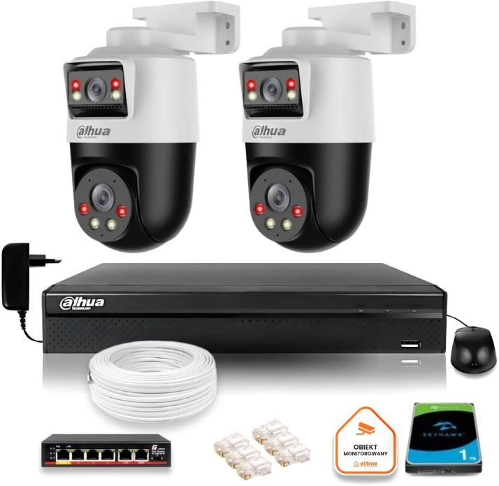 - Zestaw monitoringu IP Dahua z dwiema kamerami obrotowymi 2MP oraz dyskiem 1TB. Idealny do całodobowej ochrony domu lub firmy. Wysoka jakość obrazu, łatwy montaż i obsługa.