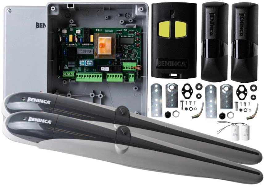 - Zestaw automatyki Beninca KBOB30M.PM 230V do bram dwuskrzydłowych do 3 metrów na skrzydło. W komplecie napędy, centrala, fotokomórki i pilot. Cicha praca, płynny start i stop, łatwy montaż.