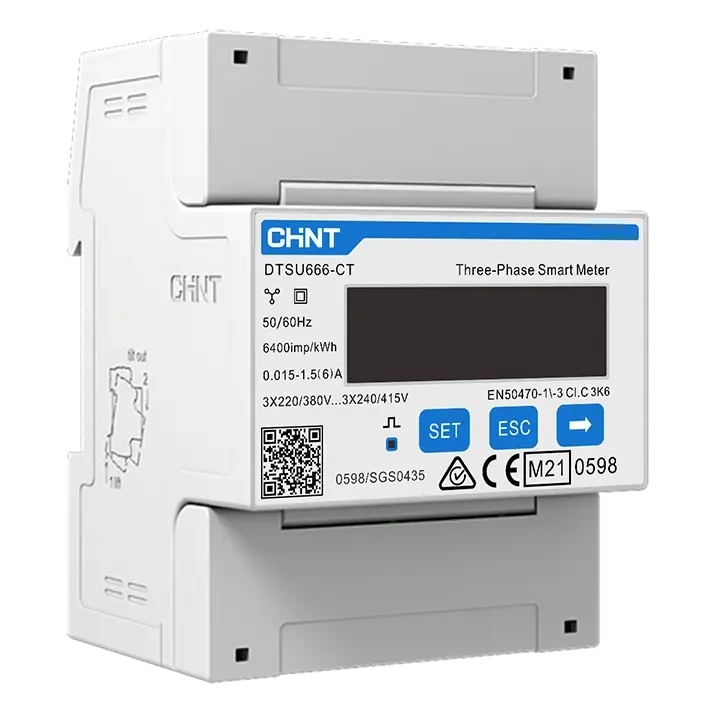 - Chint DTSU666 CT 0.015-1.5(6)A este un contor analizor de energie avansat, bidirecțional, cu patru cadrane. Unitatea este proiectată pentru măsurători semi-directe în instalații electrice trifazate,