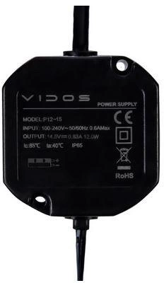 - Sursă de alimentare cu comutare VIDOS P12/15 pentru montare într-o cutie de joncțiune de Ø60 mm. Este utilizată pentru alimentarea monitoarelor de intrare video, a camerelor IP și a modulelor de control. Tensiunea de ieșire 14,5 V DC.