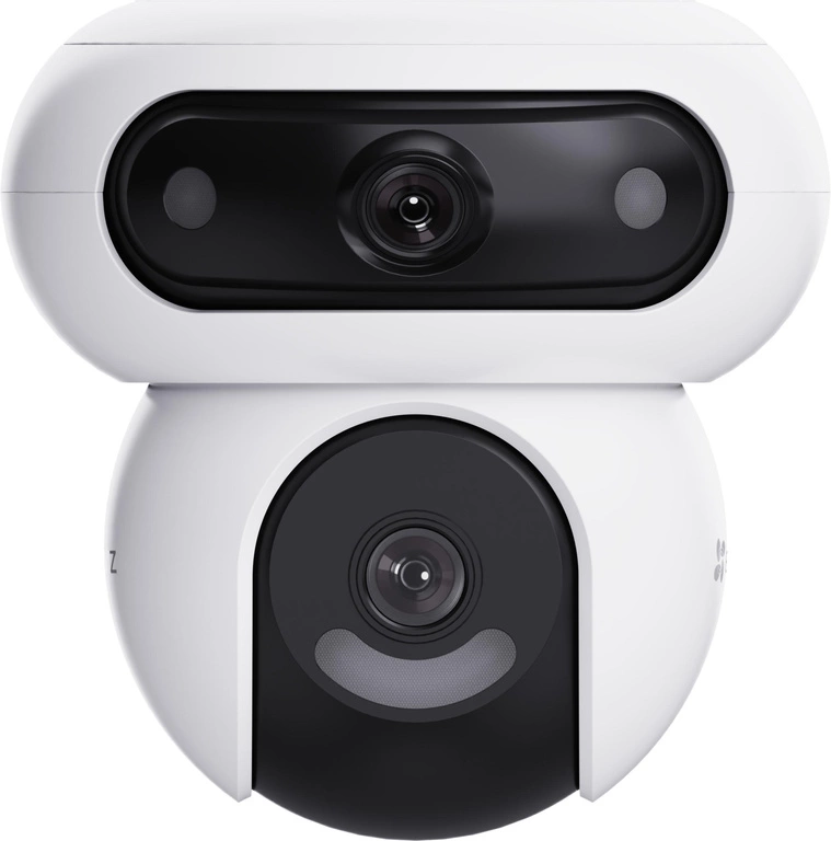 - Ezviz H90 4MP+4MP IP-kamera, utomhus/inomhus, 1/3" CMOS-sensor, 2560x1440 upplösning, 2,8mm brännvidd, mörkerseende upp till 30m, WiFi, rörelsedetektering, IP65, med mikrofon och högtalare.
