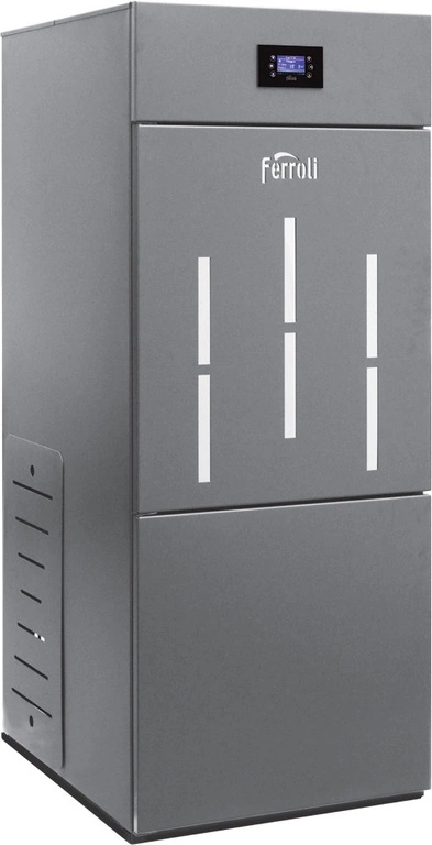 Ekologisk pelletspanna BIOPELLET PRO 12 med automatiskt system och stor bränsletank, perfekt för effektiv uppvärmning av hemmet.